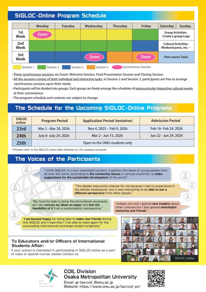 Chương trình Socially Innovative Global Classroom: Online (SIGLOC-online) kéo dài trực tuyến trong 3 tuần và người tham gia không cần phải đóng phí.